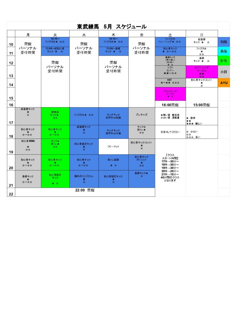 東武練馬5月スケジュール